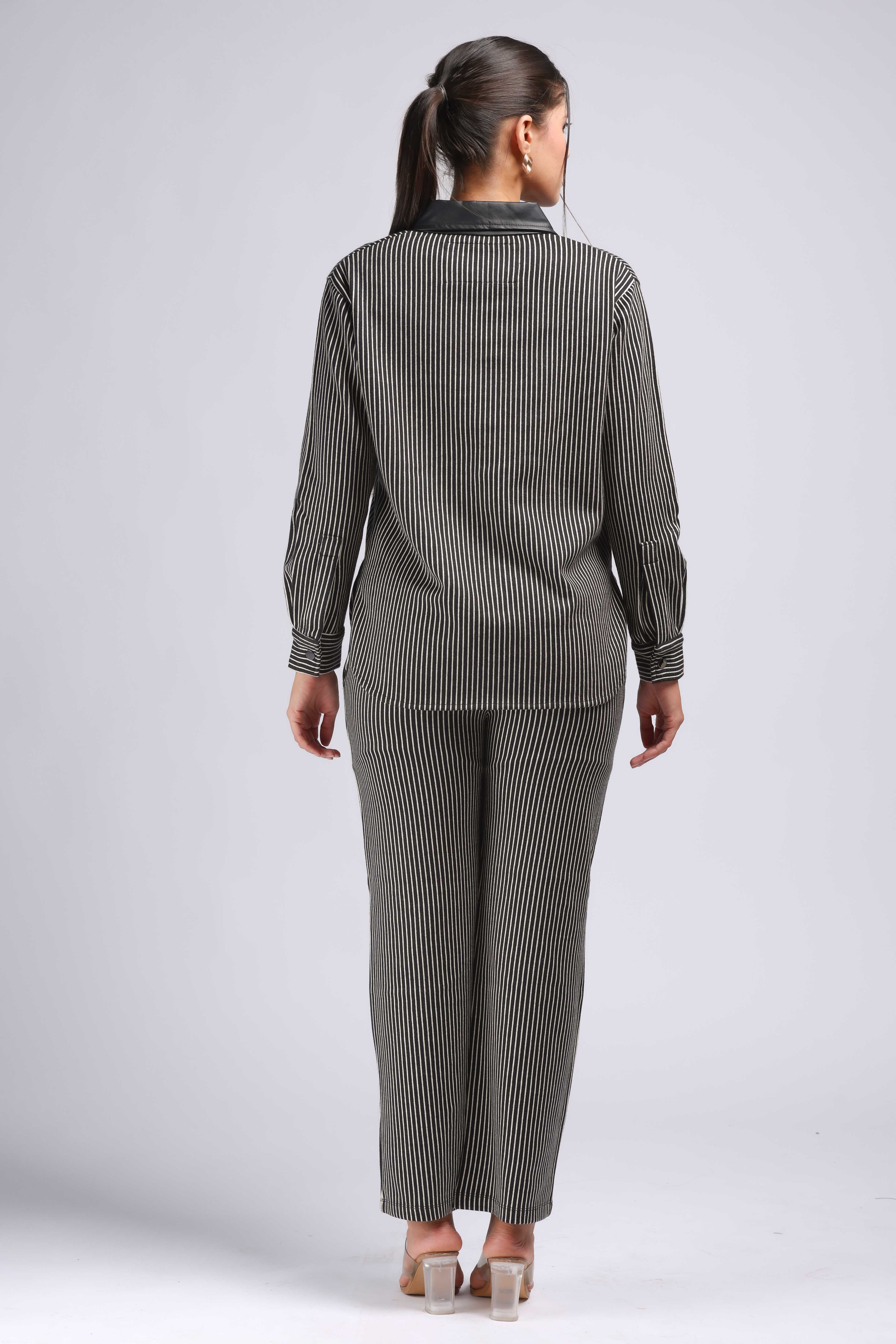 Vertical Stripes with Leather Embellishment Cord Set (PWM-23513)