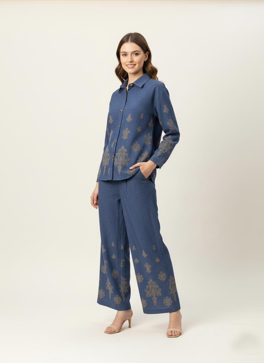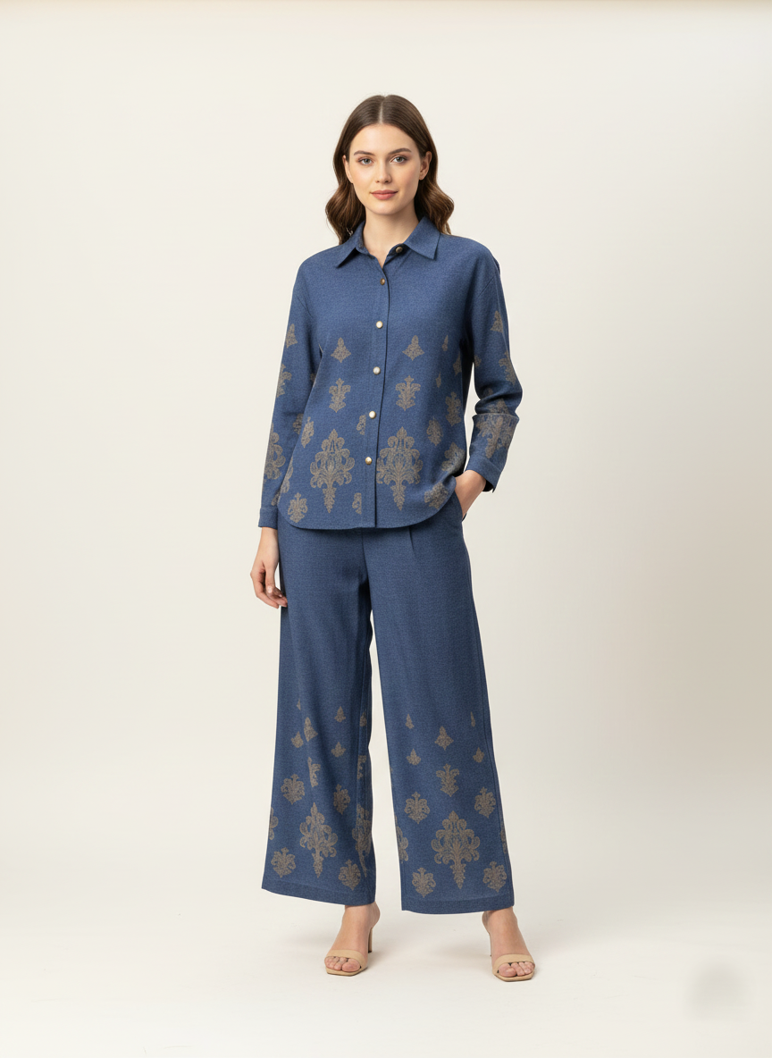 This ladies’ co-ord set is crafted from quality denim fabric, offering a structured yet comfortable feel for everyday wear. Designed with a clean, modern silhouette, it brings together durability and effortless style for polished casual looks.