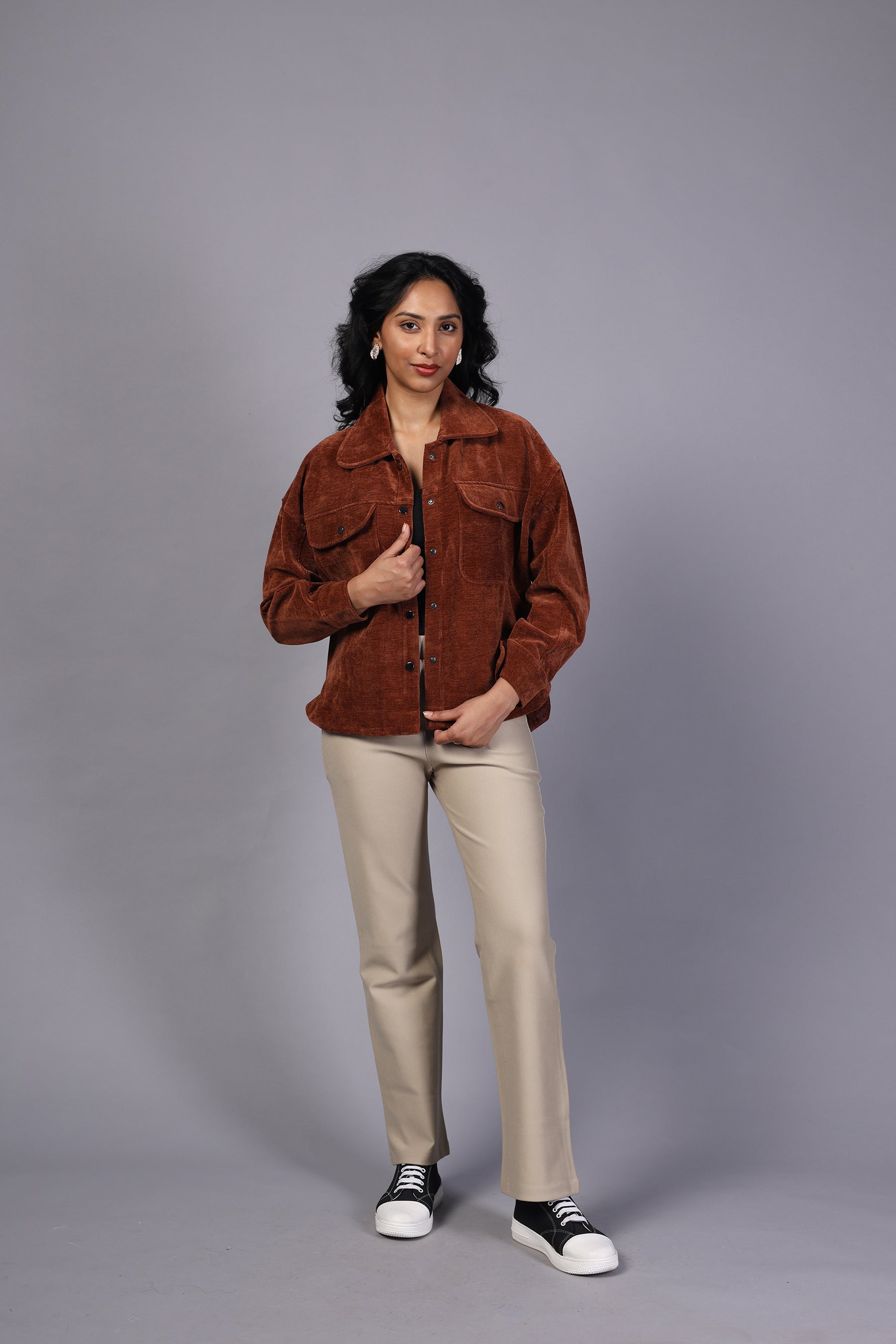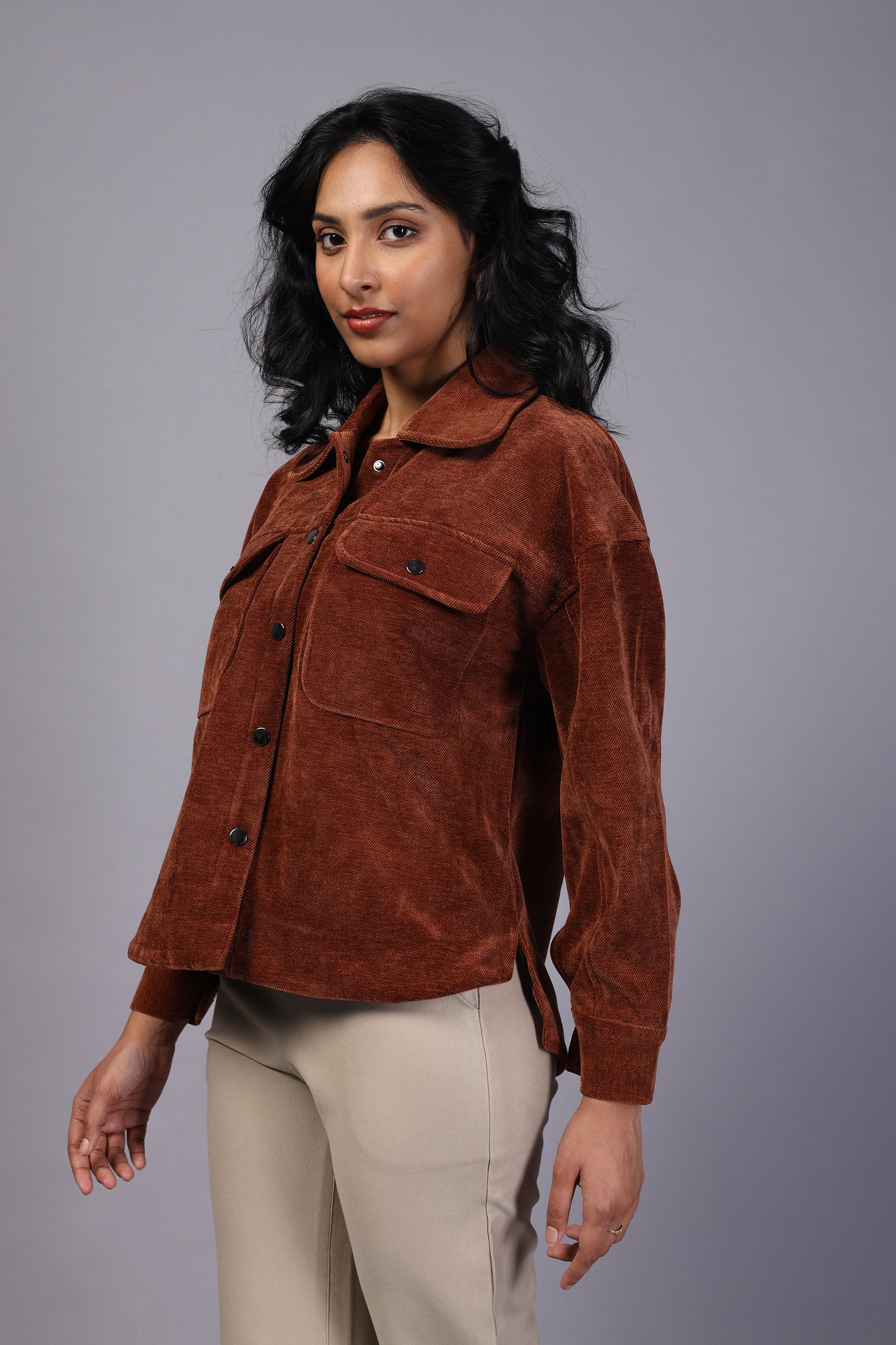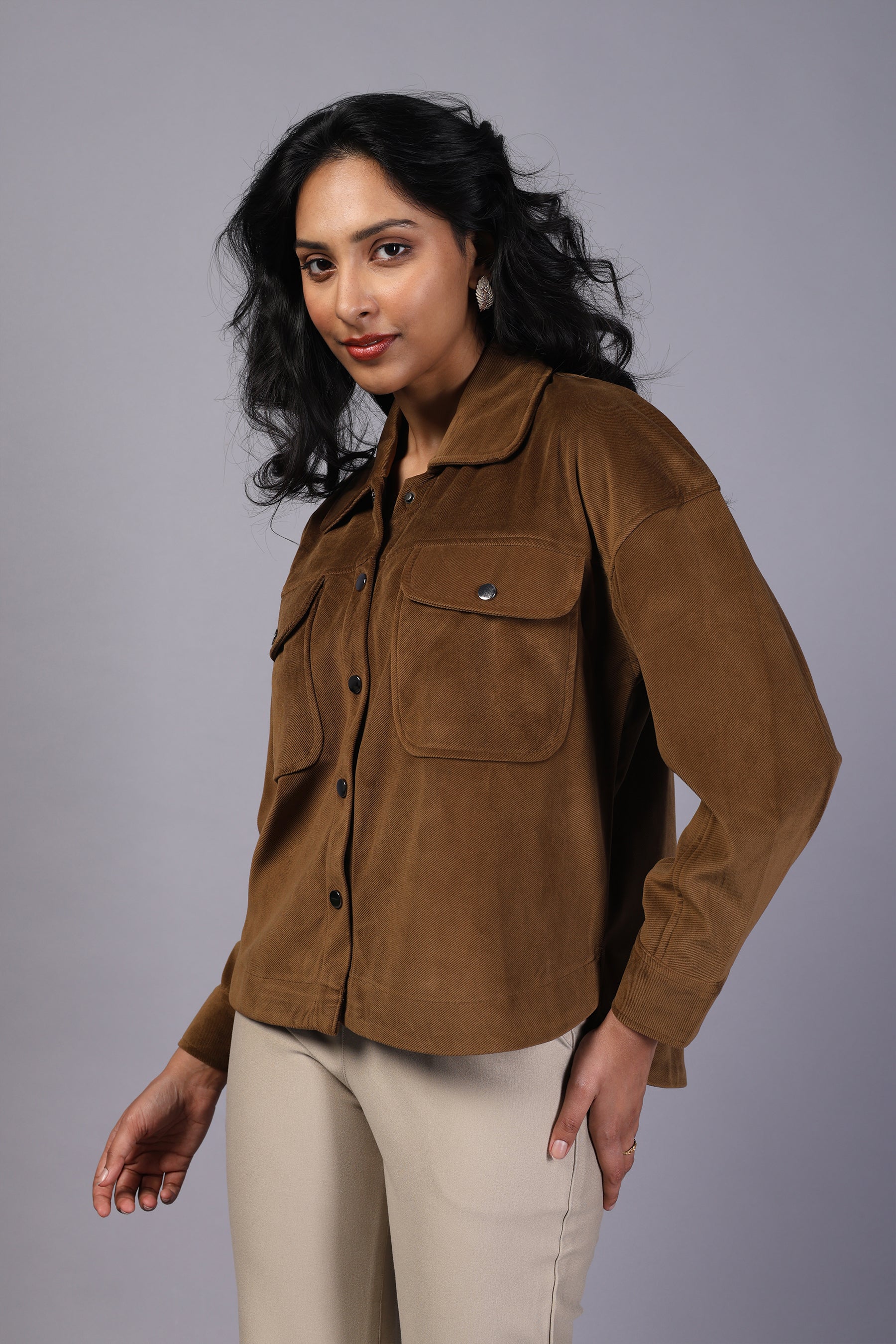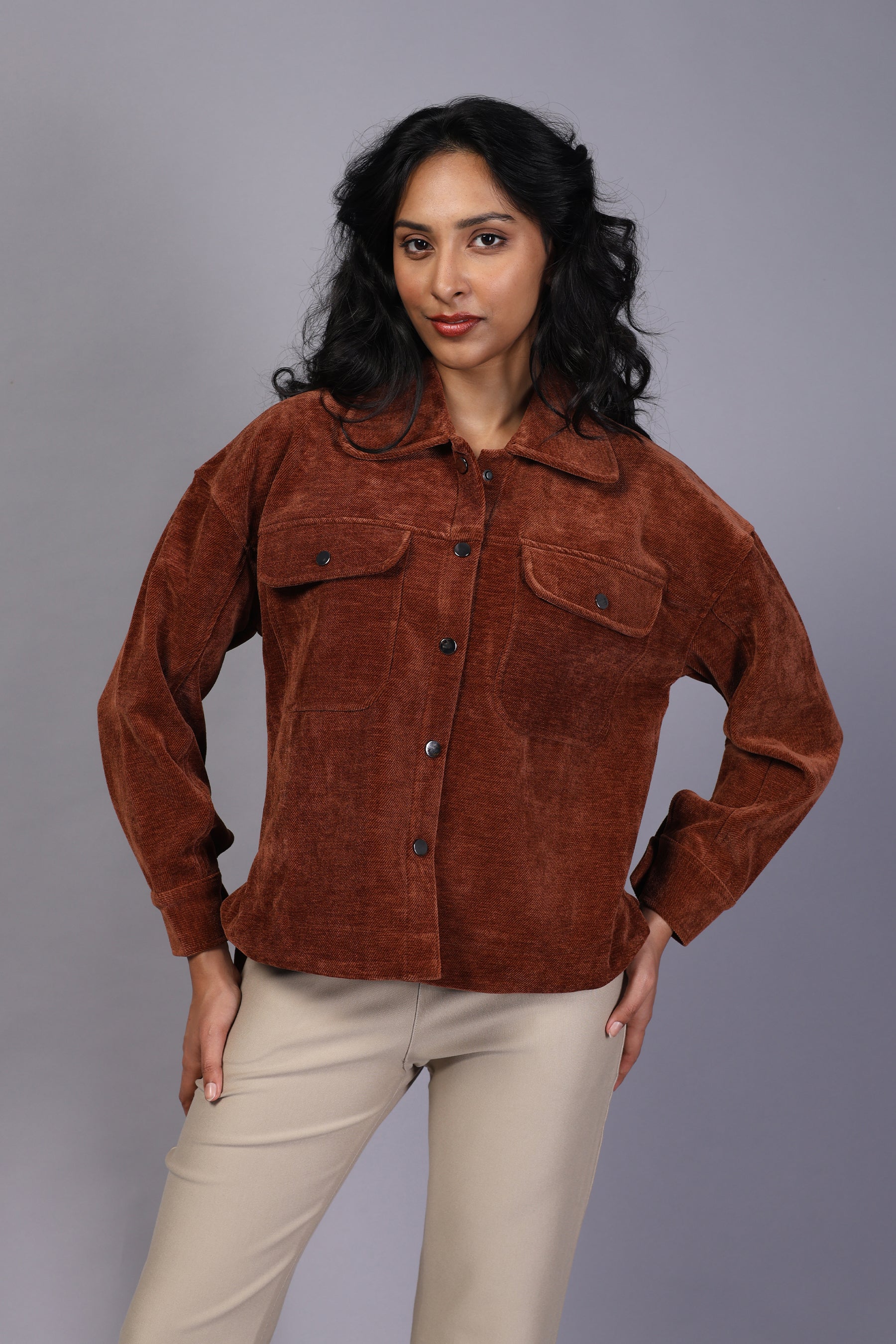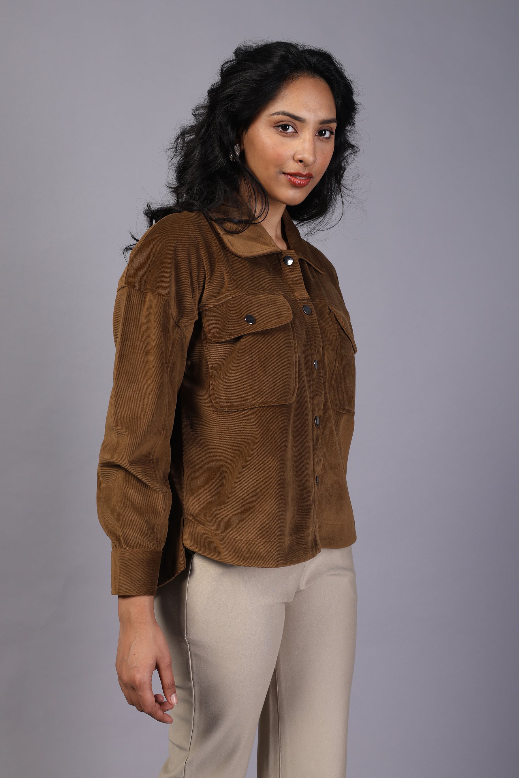 A stylish corduroy top designed for comfort and elegance. Its soft fabric and classic tailoring make it perfect for both casual outings and semi-formal wear.