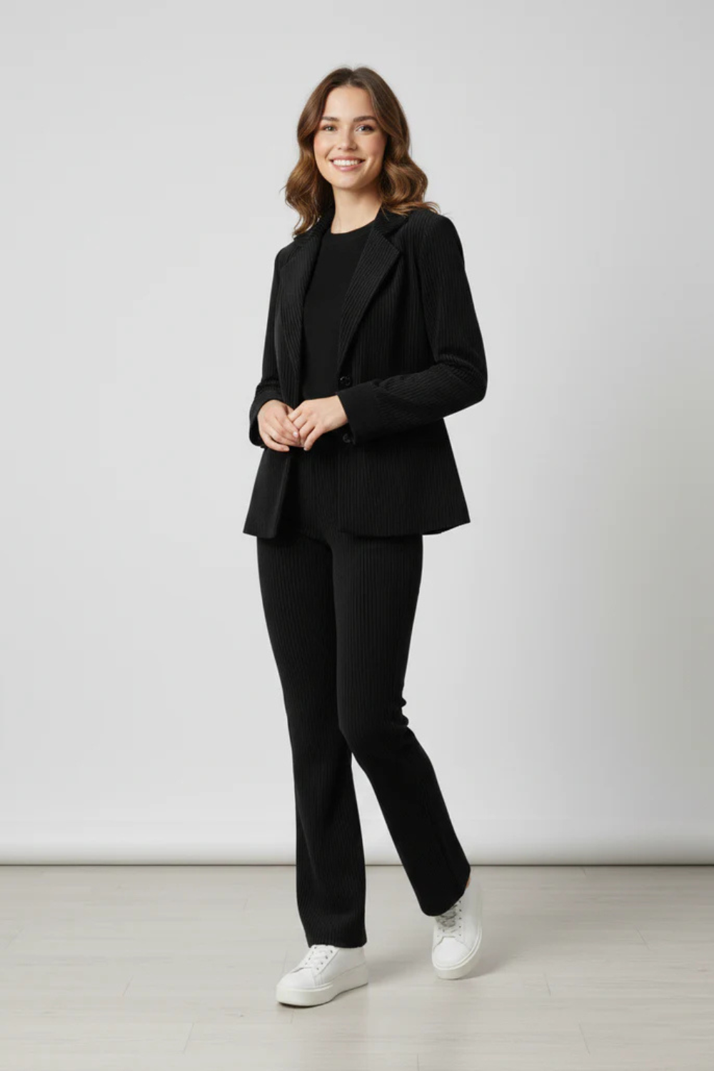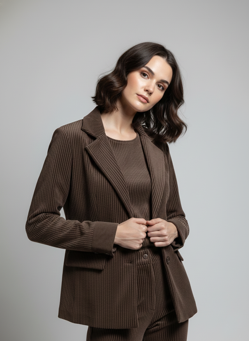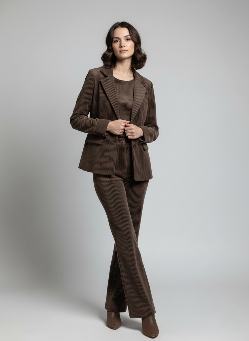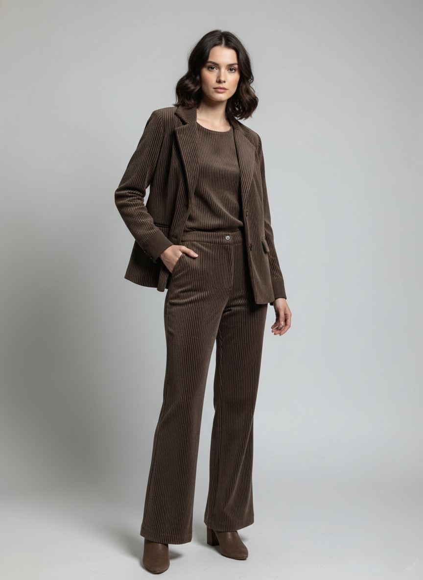 This sleek ladies’ co-ord set is crafted from soft corduroy fabric, offering a structured feel with lasting comfort. Designed for effortless transitions from day to night, it delivers a polished, contemporary look suited for relaxed evenings and stylish outings.